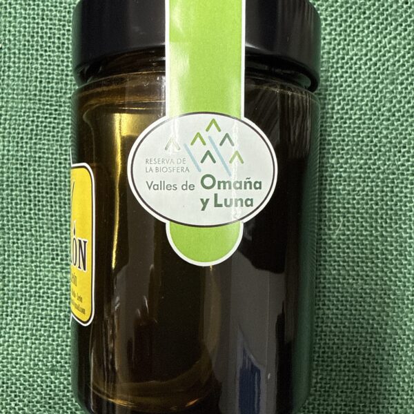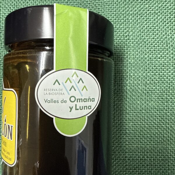 Miel de la montaña leonesa, comarca de Omaña. Variedad brezo y roble. Miel de la Reserva de la Biosfera Valles de Omaña y Luna.